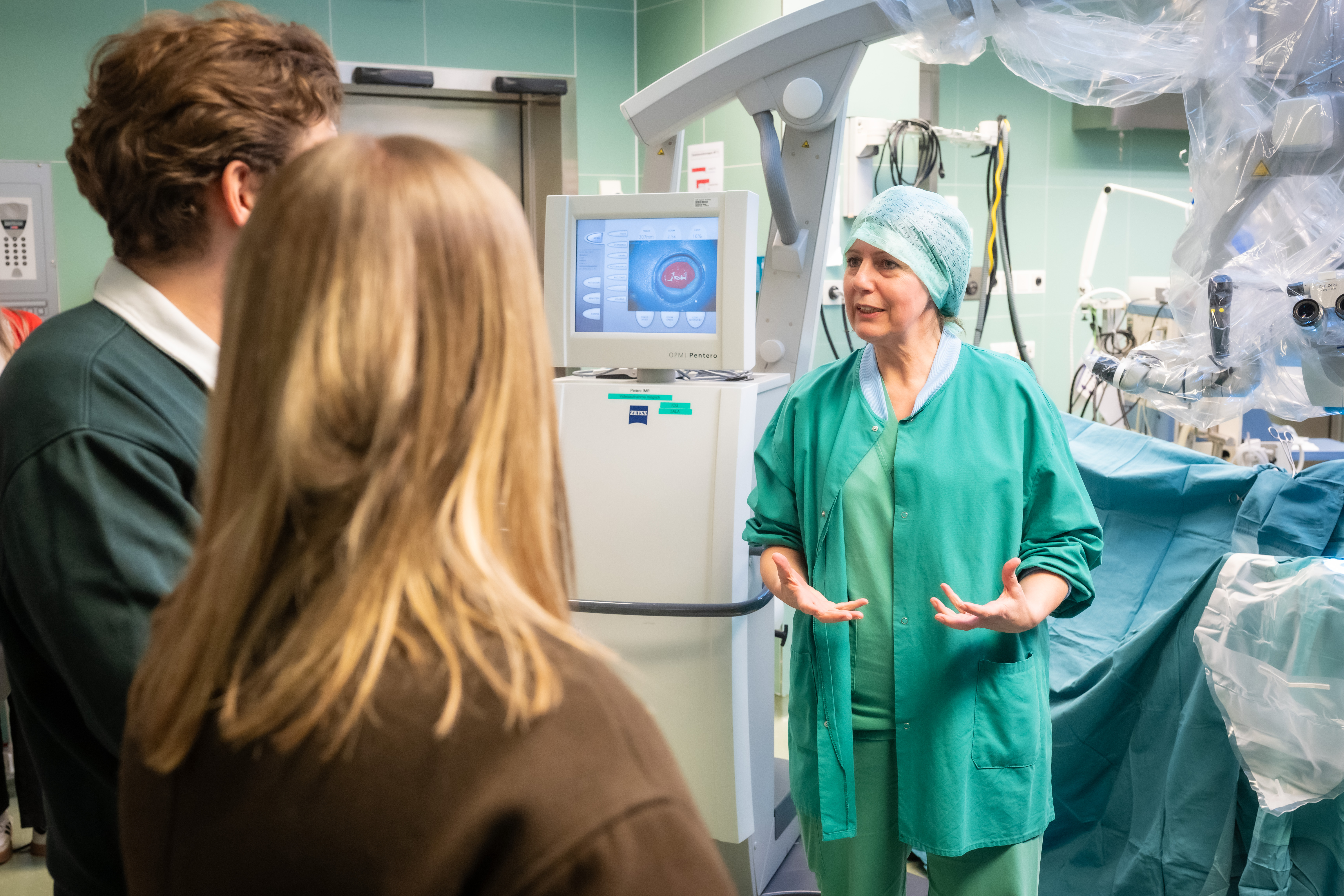 Zeitgleich verwandelte sich der Neuromed Campus in einen Hotspot für Pflege- und Assistenzberufe sowie Neuropathologie. Besonders der „Pfad der Neurochirurgie“ zog viele Wissbegierige an. Den Weg einer Patientin oder eines Patienten von der Ambulanz über die Radiologie bis in den OP und auf die Station mitzuverfolgen, machte die Komplexität und die Bedeutung jedes einzelnen Handgriffs greifbar.